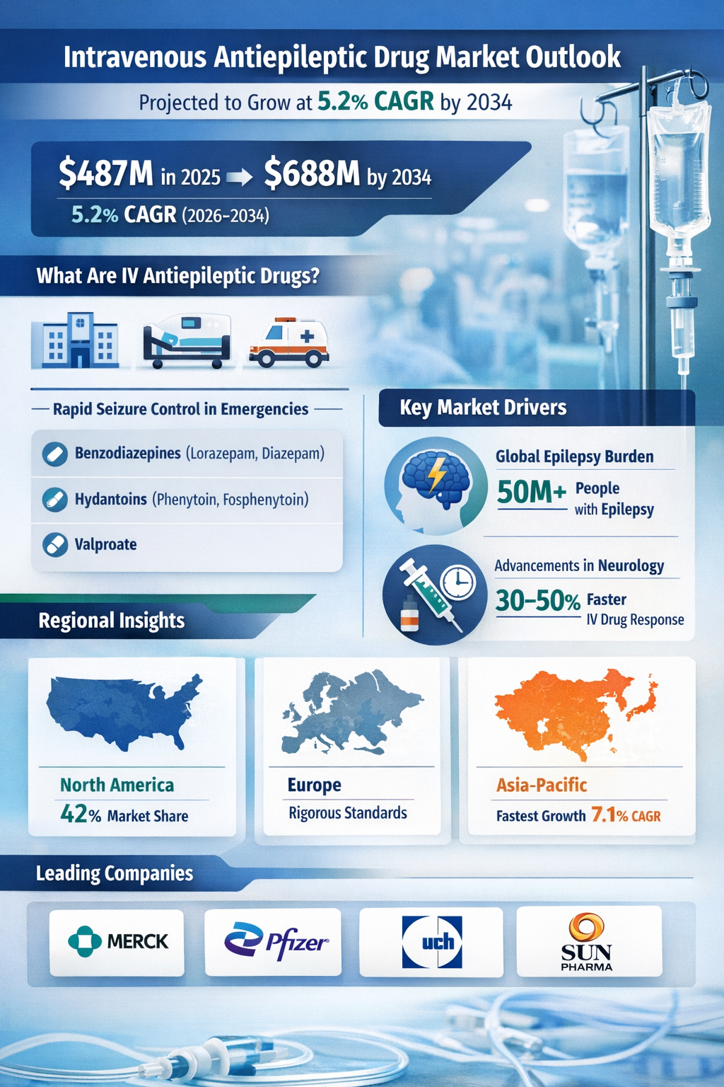 Intravenous Antiepileptic Drug Market Expected to Grow at 5.2% CAGR by 2034