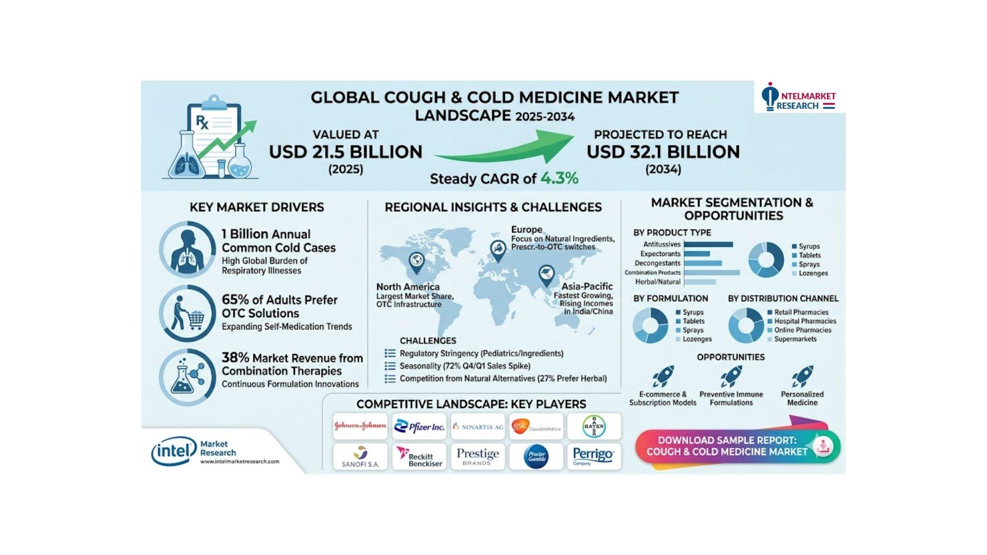 According to a new report from Intel Market Research, the global cough and cold medicine market was valued at USD 21.5 billion in 2025 and is projected to reach USD 32.1 billion by 2034, growing at a steady CAGR of 4.3% during the forecast period (2026–2034). This growth stems from rising global incidences of respiratory infections, increasing self-medication practices, and continuous formulation innovations by pharmaceutical companies.