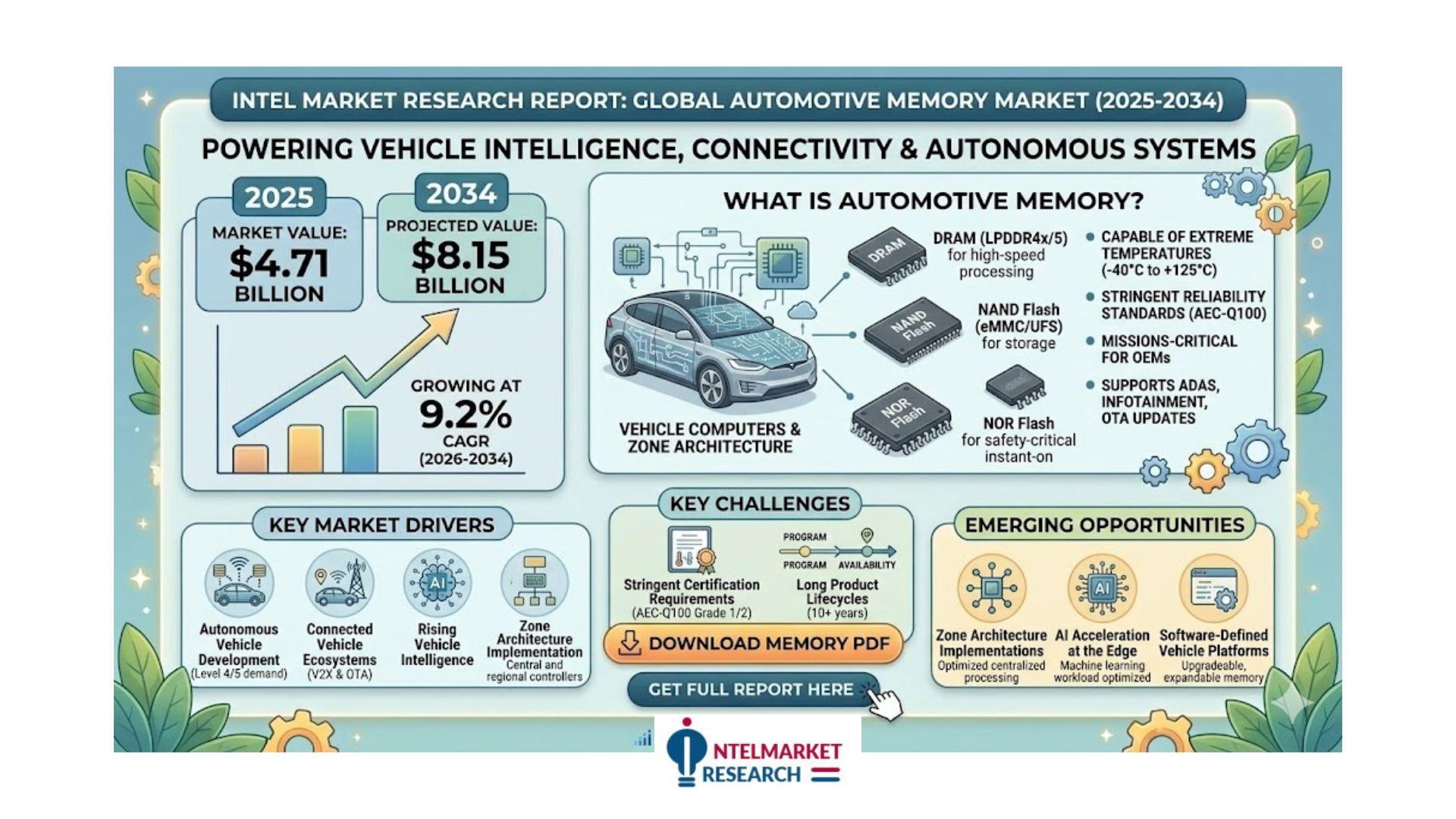 According to a new report from Intel Market Research, the global Automotive Memory market was valued at USD 4.71 billion in 2025 and is projected to reach USD 8.15 billion by 2034, growing at a strong CAGR of 9.2% during the forecast period (2026-2034). This growth is driven by increasing vehicle intelligence, connectivity demands, and advancements in autonomous driving technologies.