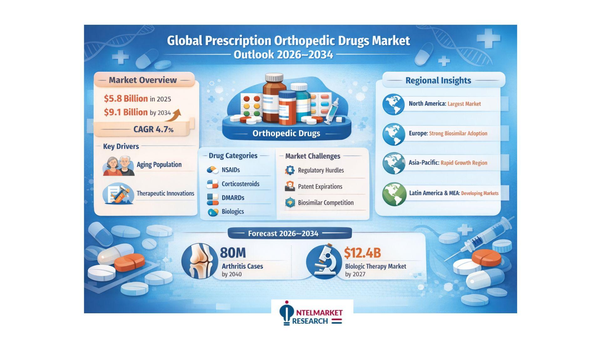 According to a new report from Intel Market Research, the global prescription orthopedic drugs market was valued at USD 5.8 billion in 2025 and is projected to reach USD 9.1 billion by 2034, growing at a steady CAGR of 4.7% during the forecast period (2026–2034). This sustained growth reflects an aging global population's increasing need for musculoskeletal treatments and continuous therapeutic advancements.