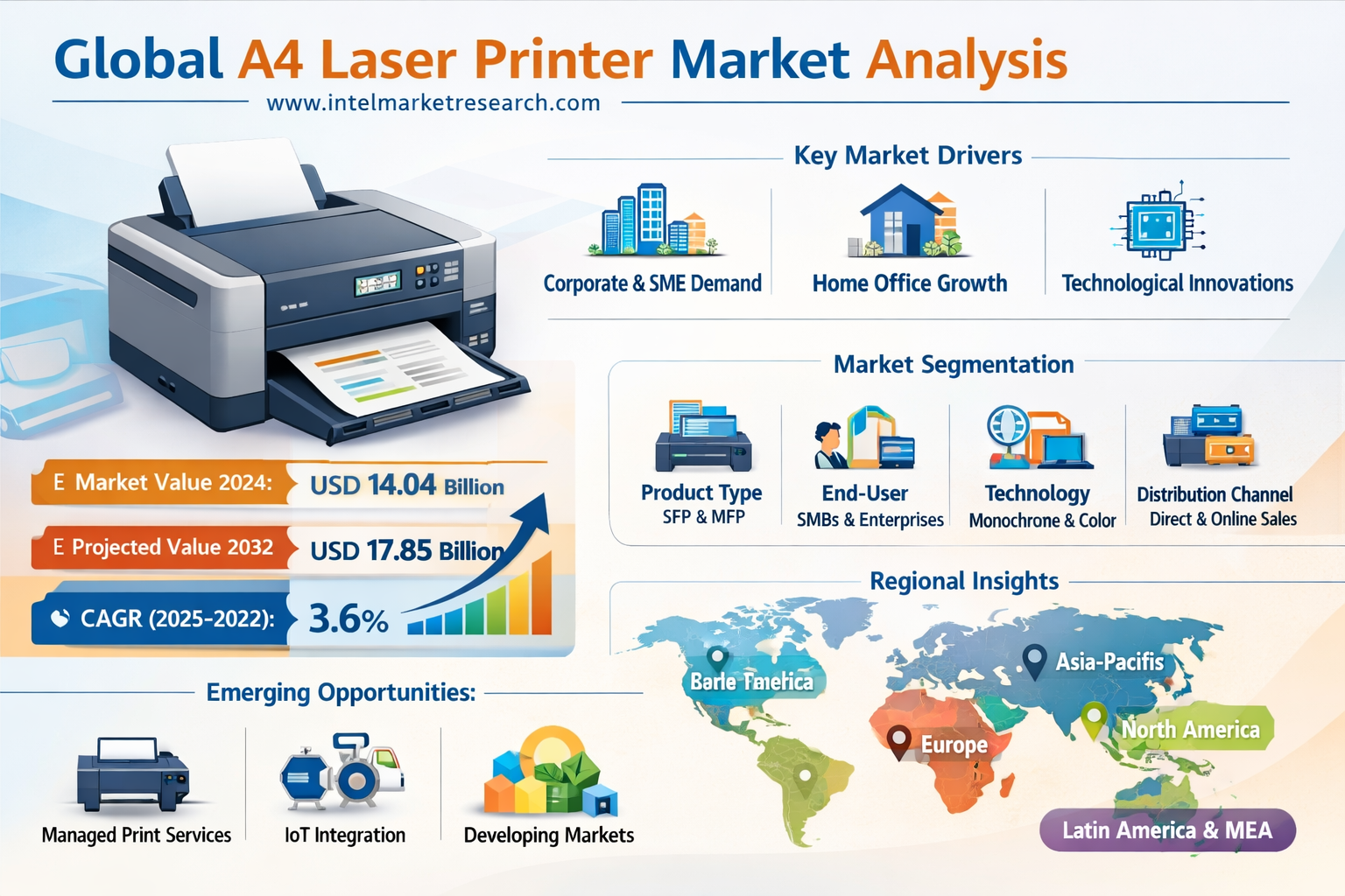 According to a new report from Intel Market Research, the global A4 Laser Printer market was valued at USD 14,040 million in 2024 and is projected to reach USD 17,850 million by 2032, growing at a steady CAGR of 3.6% during the forecast period (2025–2032). This growth is largely driven by persistent corporate and small-medium business (SMB) demand for reliable, high-volume printing, increasing adoption in the home office sector, and continuous technological innovations that enhance connectivity and user efficiency.