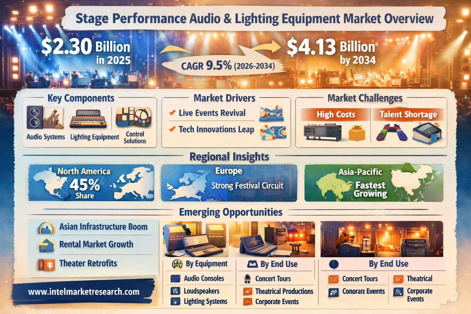 According to a new report from Intel Market Research, the global Stage Performance Audio and Lighting Equipment market was valued at USD 2.30 billion in 2025 and is projected to reach USD 4.13 billion by 2034, growing at a CAGR of 9.5% during the forecast period (2026-2034). This expansion reflects the resurgence of live entertainment post-pandemic and rapid technological advancements transforming production quality standards.