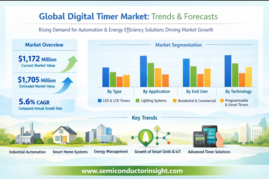 Global Digital Timer Market, valued at a robust US$ 1172 million in 2024, is on a trajectory of steady expansion, projected to reach US$ 1705 million by 2032. This growth, representing a compound annual growth rate (CAGR) of 5.6%, is detailed in a comprehensive new report published by Semiconductor Insight. The study highlights the critical role these devices play in automation, energy management, and operational efficiency across residential, commercial, and industrial sectors worldwide.