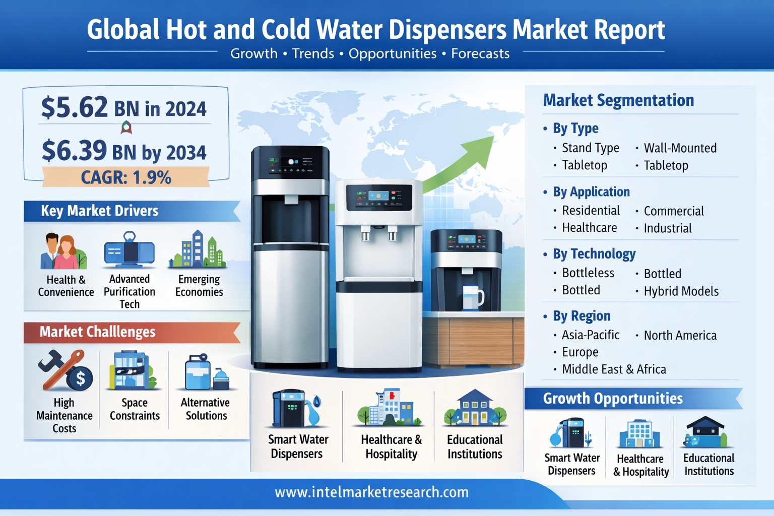 According to a new report from Intel Market Research, the global hot and cold water dispensers market was valued at USD 5.62 billion in 2024 and is projected to reach USD 6.39 billion by 2034, growing at a steady CAGR of 1.9% during the forecast period (2024–2034). This growth is driven by increasing health consciousness, urbanization trends, and technological advancements in water purification systems.