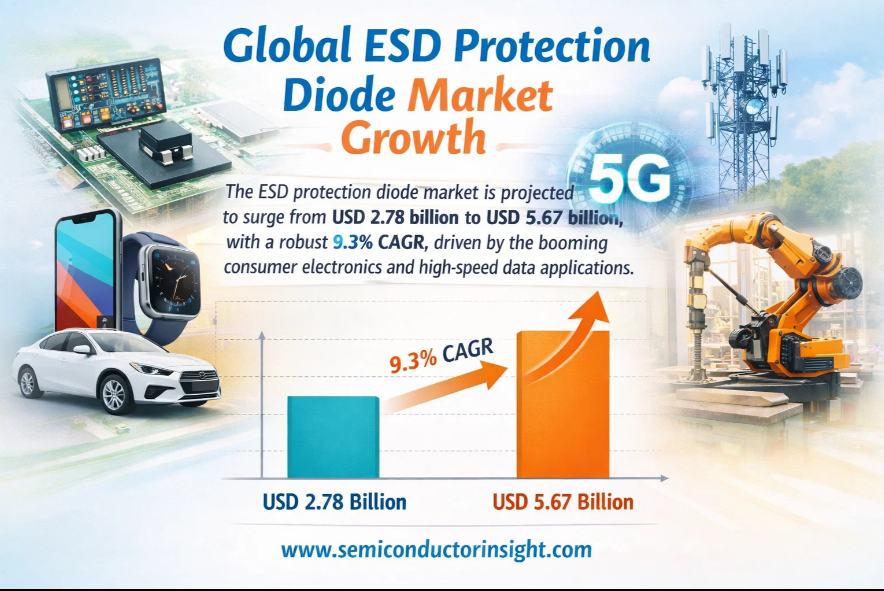 Global ESD Protection Diode Market, valued at US$ 2.78 billion in 2024, is poised for substantial growth, projected to reach US$ 5.67 billion by 2032. This expansion, representing a compound annual growth rate (CAGR) of 9.3% from 2025 to 2032, is detailed in a comprehensive new report published by Semiconductor Insight. The study underscores the indispensable role of these components in safeguarding sensitive electronic circuits from electrostatic discharge, a critical requirement across virtually all modern electronic applications.