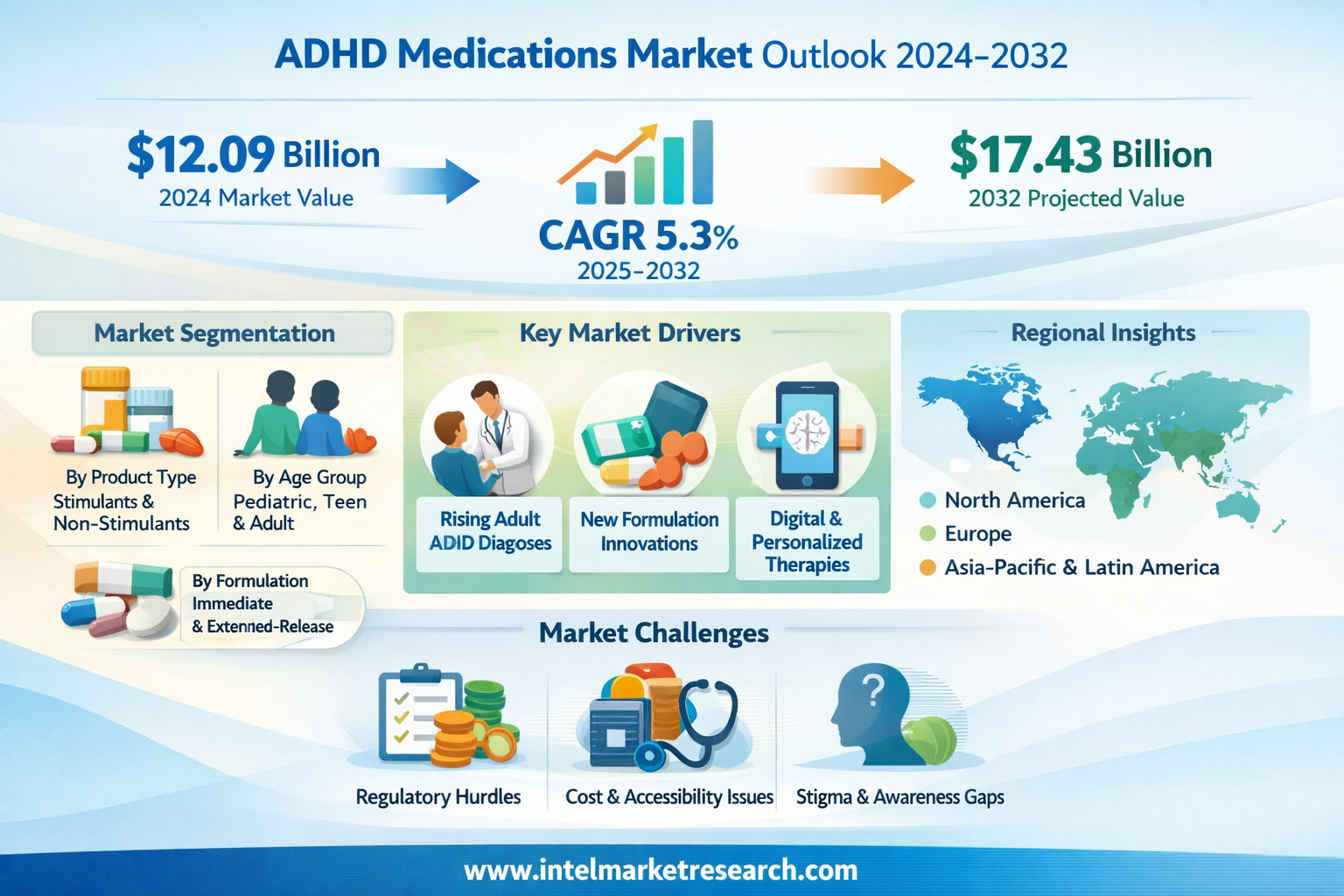 According to a new report from Intel Market Research, the global Attention-Deficit Hyperactivity Disorder (ADHD) Medications market was valued at USD 12,090 million in 2024 and is projected to reach USD 17,430 million by 2032, growing at a steady CAGR of 5.3% during the forecast period (2025-2032). This growth trajectory reflects increasing global awareness of neurodevelopmental disorders, improved diagnostic capabilities, and ongoing pharmaceutical innovations in ADHD treatment modalities.
