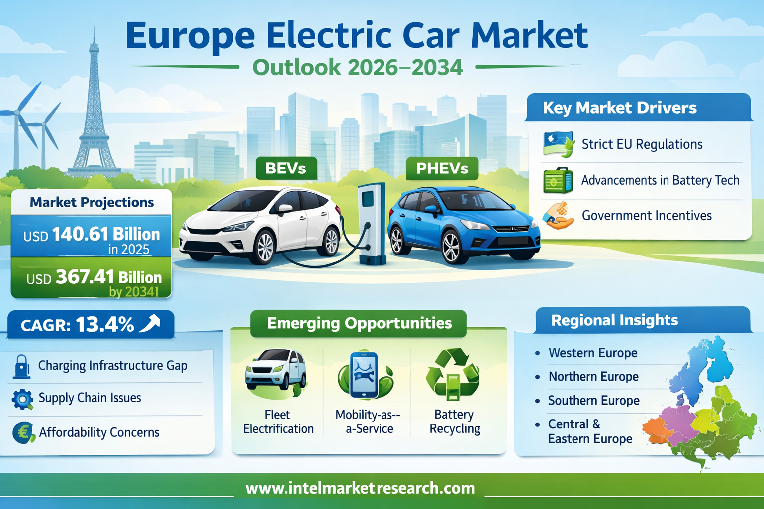 According to a new report from Intel Market Research, the Europe electric car market was valued at USD 140.61 billion in 2025 and is projected to reach USD 367.41 billion by 2034, growing at a strong CAGR of 13.4% during the forecast period (2026–2034). This growth is propelled by the European Union's stringent environmental regulations, aggressive national subsidy schemes, rapid advancements in battery technology, and a profound shift in consumer preference towards sustainable mobility.