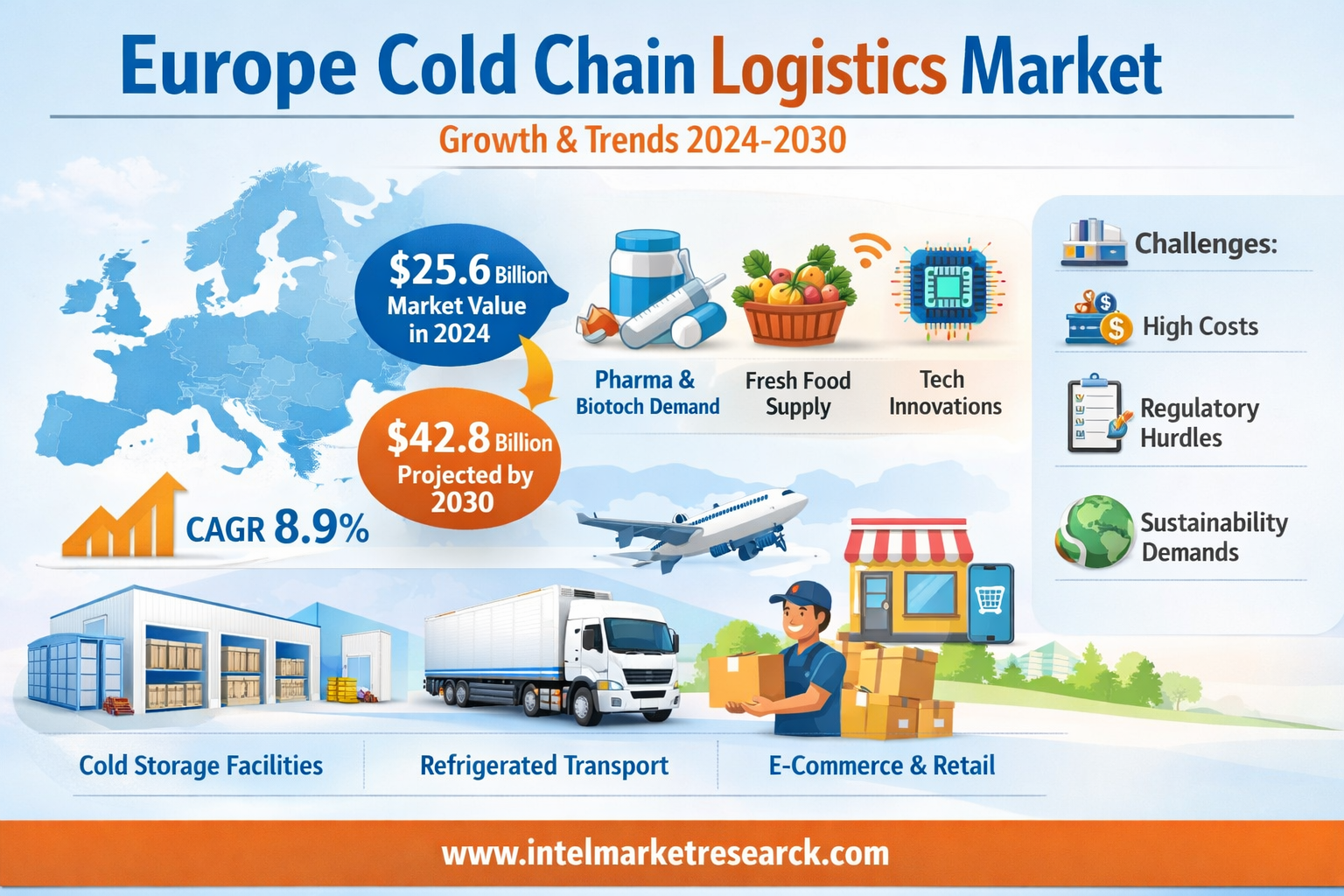 According to a new report from Intel Market Research, the Europe Cold Chain Logistics market was valued at USD 25.6 billion in 2024 and is projected to reach USD 42.8 billion by 2030, growing at a robust CAGR of 8.9% during the forecast period. This expansion is propelled by increasing consumer demand for perishable foods, stringent pharmaceutical transport regulations, and the critical role of technological integration in enhancing supply chain integrity.