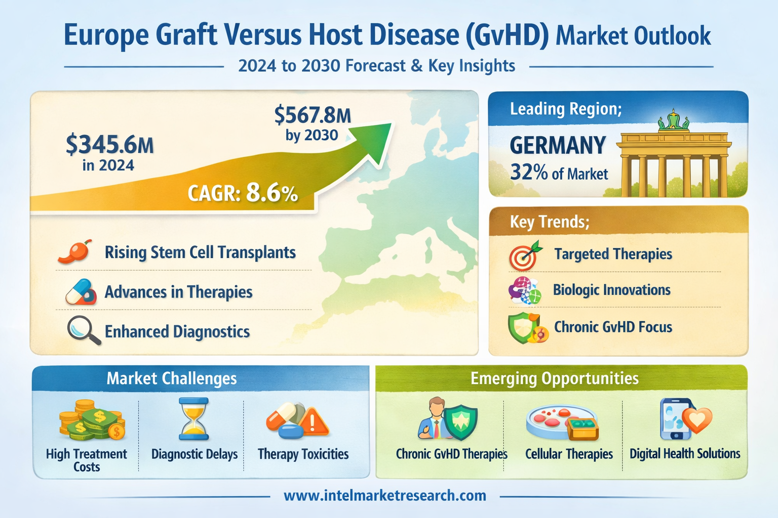 According to a new report from Intel Market Research, the Europe Graft Versus Host Disease (GvHD) market was valued at USD 345.6 million in 2024 and is projected to reach USD 567.8 million by 2030, growing at a CAGR of 8.6% during the forecast period (2025–2030). This growth is driven by increasing stem cell transplantation rates, advancements in immunosuppressive therapies, and improved diagnostic capabilities across European healthcare systems.