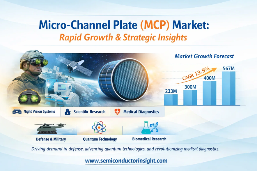 Global Micro-channel Plate (MCP) Market, valued at US$ 233 million in 2024, is poised for remarkable expansion, projected to reach US$ 567 million by 2032. This robust growth trajectory, representing a compound annual growth rate (CAGR) of 13.9%, is detailed in a comprehensive new report published by Semiconductor Insight. The study underscores the indispensable role of these high-performance electron multipliers in enabling cutting-edge detection and imaging technologies across defense, scientific research, and medical diagnostics.