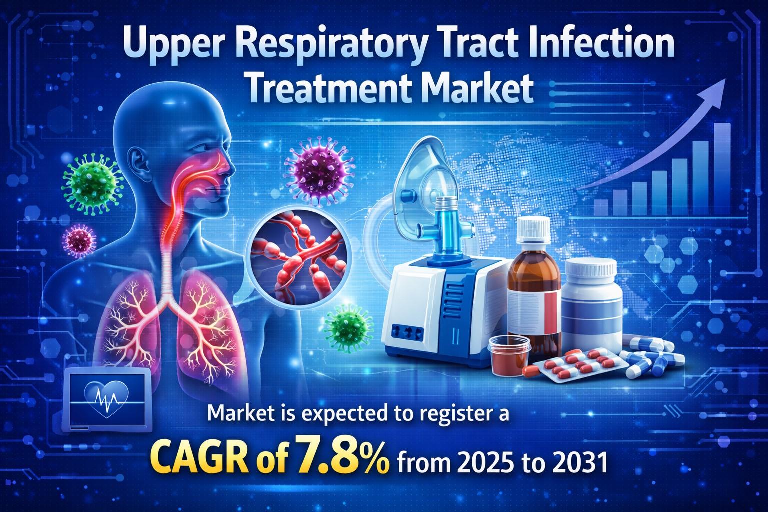 The upper respiratory tract infection (URTI) treatment market is experiencing consistent growth due to the rising incidence of infections such as the common cold, sinusitis, pharyngitis, and laryngitis. These infections are among the most common illnesses worldwide, affecting millions of individuals annually. The increasing burden of viral and bacterial infections, coupled with changing environmental conditions and pollution levels, is significantly contributing to the demand for effective treatment solutions. The Upper Respiratory Tract Infection Treatment Market is expected to register a CAGR of 7.8% from 2025 to 2031. Additionally, the growing availability of over-the-counter (OTC) medications and advancements in pharmaceutical formulations are supporting market expansion.