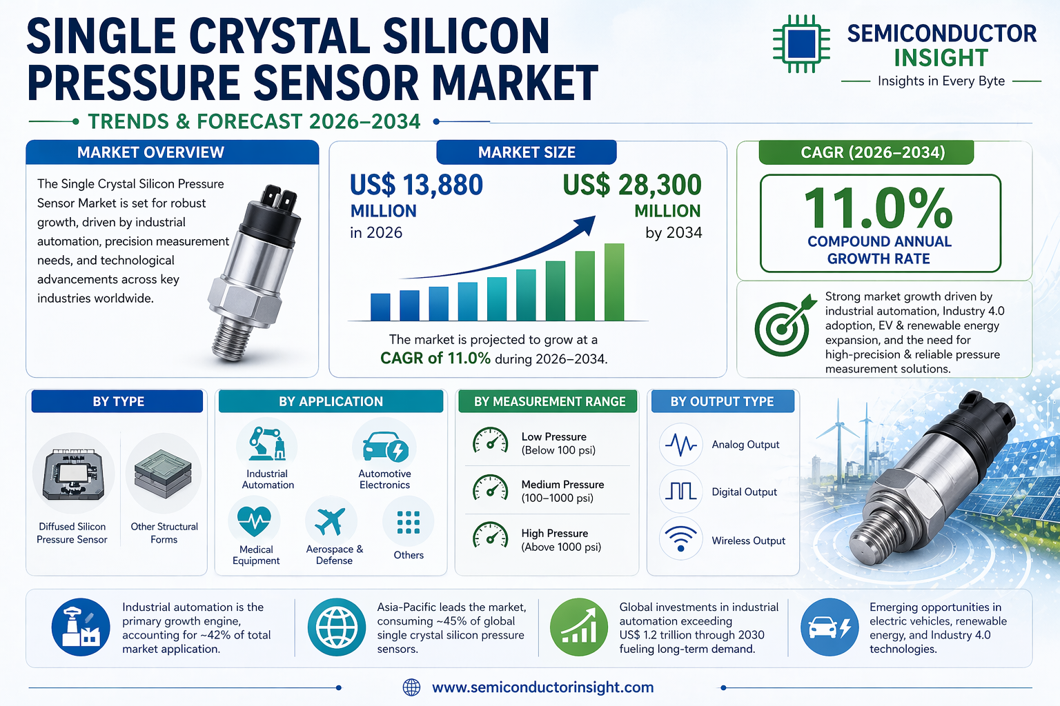Single Crystal Silicon Pressure Sensor Market 2034 CAGR 11.0% Driven by Industrial Automation and Smart Sensing