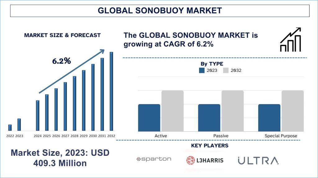 The Sonobuoy Market was valued at USD 409.3 Million in 2023 and is expected to grow at a robust CAGR of around 6.2% during the forecast period (2024-2032)