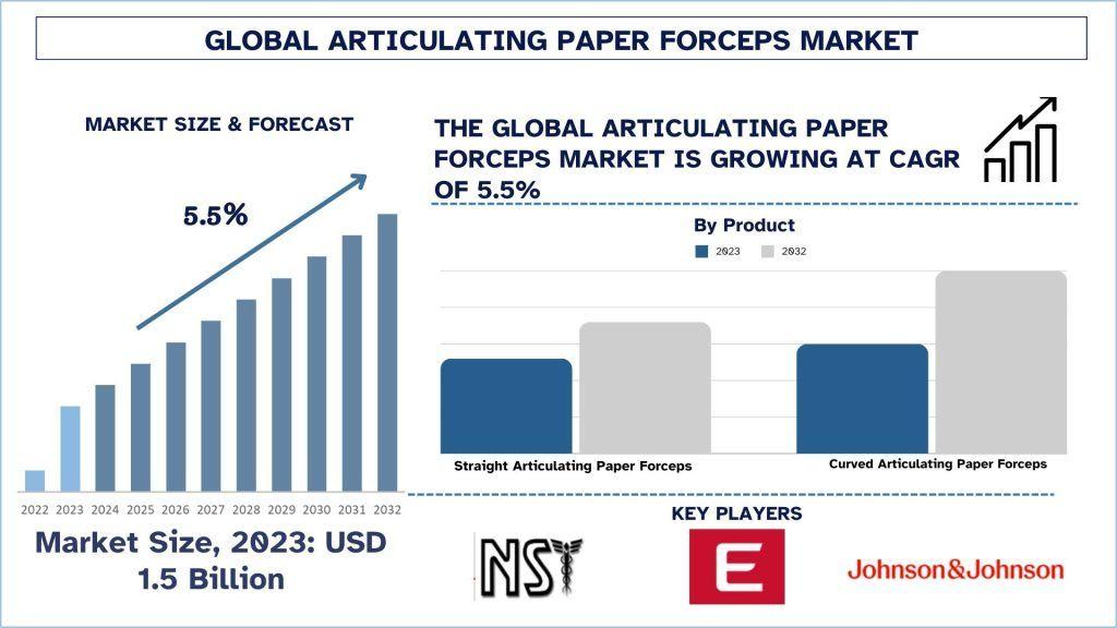 The Articulating Paper Forceps Market was valued at approximately USD 1.5 Billion in 2023 and is expected to grow at a strong CAGR of around 5.5% during the forecast period (2024-2032)